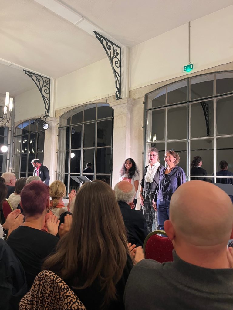 Au terme de deux mois d’écriture et d’immersion dans les archives du château de Voltaire, Lise Facchin a écrit Résonances ou Puissiez-vous seulement entendre et nous serions sauvés. La pièce met en scène Alex, un.e adolescent.e en révolte, et une Allégorie, dans un dialogue tendu entre intime et politique. Désobéissance, urgence écologique, fracture générationnelle : le texte puise dans l’héritage des Lumières pour interroger la nécessité d’agir et de se faire entendre. Présentée le 23 septembre à l’Orangerie du Château de Voltaire dans une mise en lecture de Wissam Arbache, avec les comédiennes Chloé Thébault et Valentine Sergo, la pièce a rencontré un public nombreux et attentif.